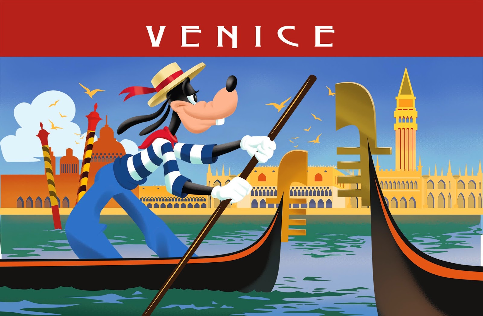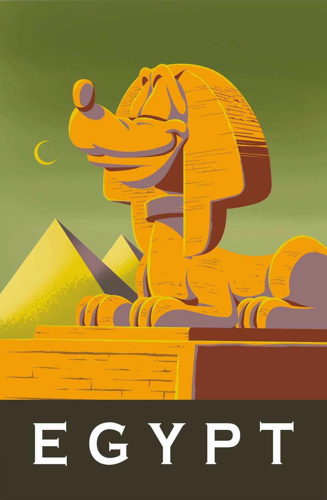 A wrinkle that got added to this job towards the tail end; someone at Disney really liked the idea of the vintage travel posters that I had used in one of the other concepts. They wondered if I could create postcards of the characters that mimicked the look of vintage travel posters. Those would be included as an "extra" with the purchase of the DVD.